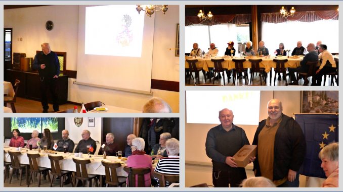 Seine Ausführungen ergänzte Jörg Wontorra durch eine Vielzahl von Zeichnungen und Fotografien, sodass sich alle Anwesenden wahrlich ein Bild davon machen konnten. Auch die unterschiedlichen Wappenarten beschrieb er anhand von entsprechenden Beispielen an Familienwappen, Personenwappen, Staatswappen oder Wappen der Gemeinden und Städte.